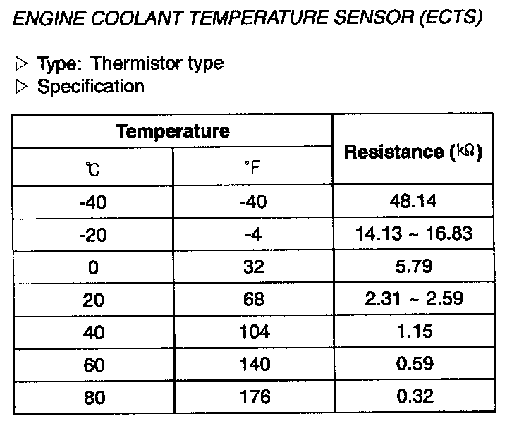 Engine Coolent Temperature Sensor (ECTS) - Specification: