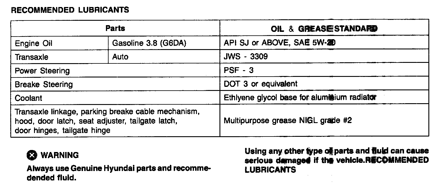 Lubricants Capacities: