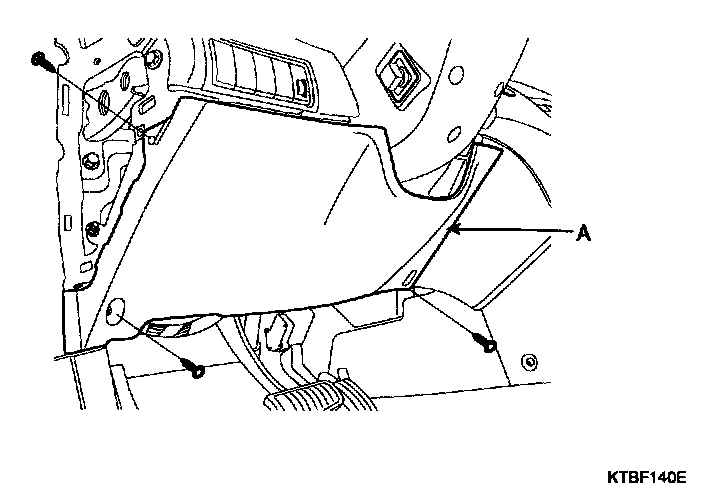2. Remove the crash pad lower panel (A). Avoid damaging retaining clip.