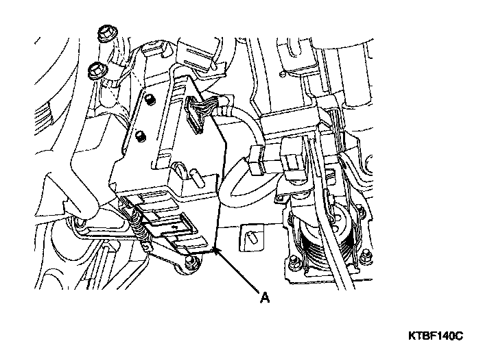 4. Remove the body control module (A) and tilt & telescope unit after loosening 2 nuts and disconnecting connector.