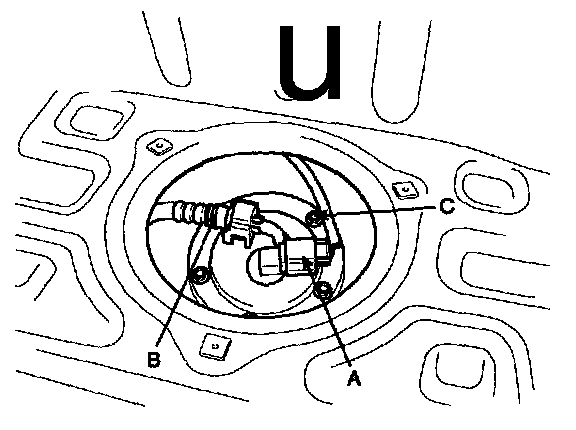 4. Unfasten the Sub Fuel Sender mounting bolts (C) and remove the Sub Fuel Sender.