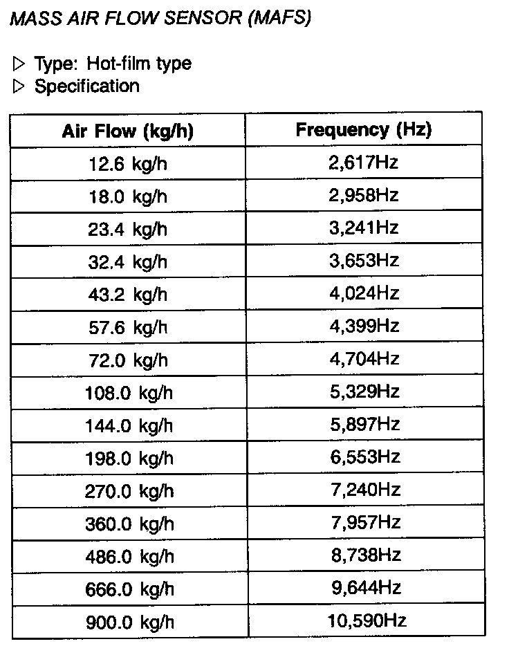 Mass Air Flow Sensor (MAFS) - Specifications: