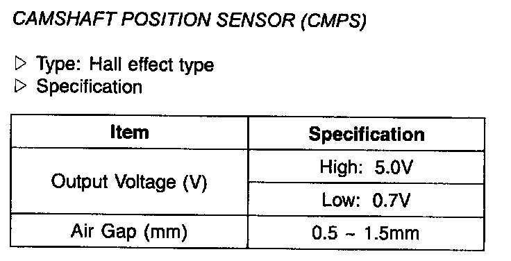 Camshaft Position Sensor (CPS) - Specification: