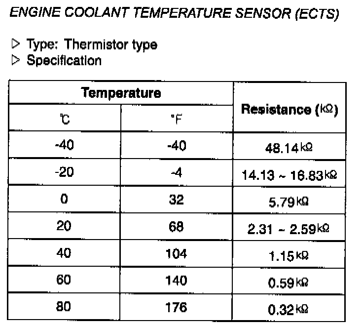 Engine Coolant Temperature Sensor (ECTS) - Specification: