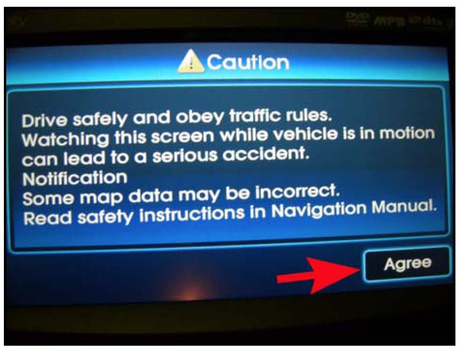 1. Turn key to the Accessory (ACC) position and press the OK button on the screen.