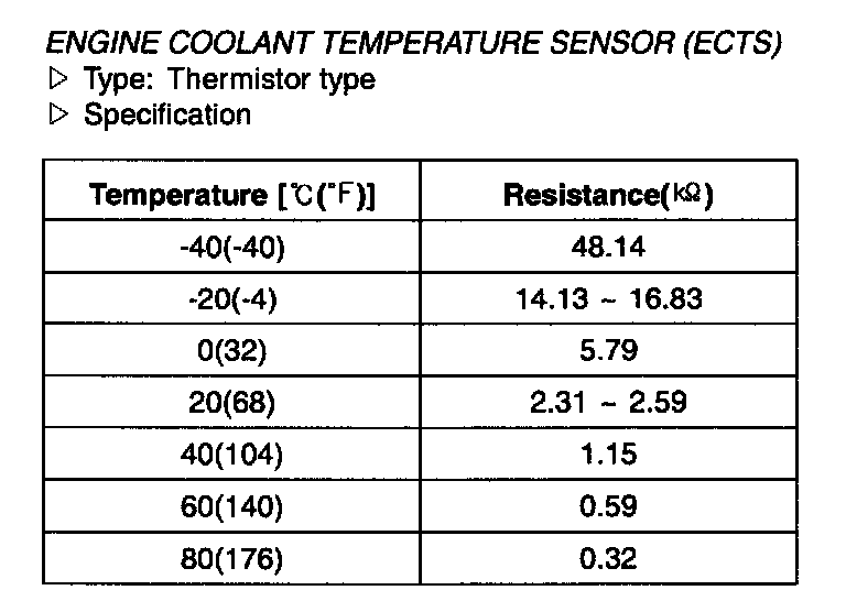 Engine Coolant Temperature Sensor (ECTS) - Specification: