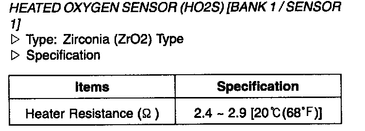 Heated Oxygen Sensor (HO2S) [Bank 1 / Sensor 1] - Specification: