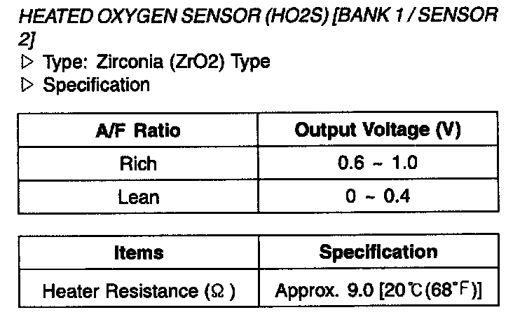 Heated Oxygen Sensor (HO2S) [Bank 1 / Sensor 2] - Specification: