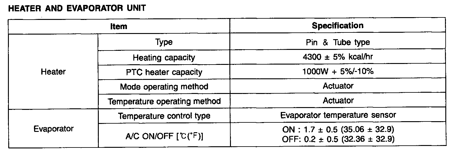 Heater And Evaporator Unit - Specification: