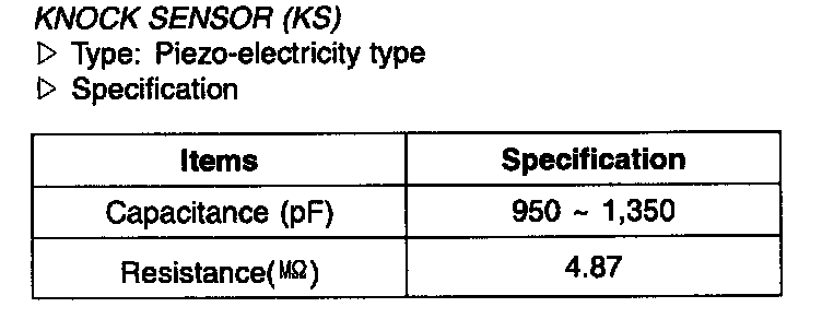 Knock Sensor (KS) - Specification: