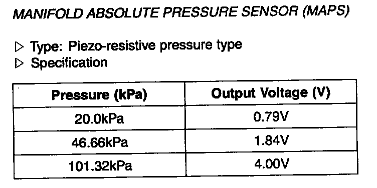 Manifold Absolute Pressure Sensor (MAPS) - Specification: