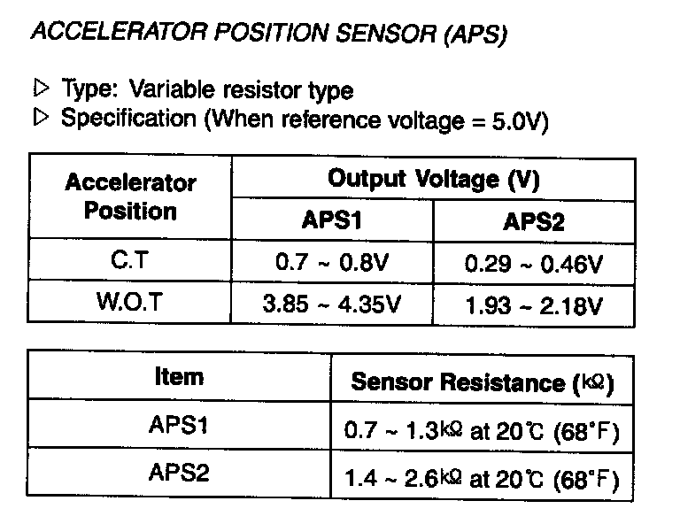 Accelerator Position Sensor (APS) - Specification: