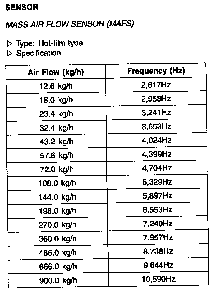 Mass Air Flow Sensor (MAFS) - Specification: