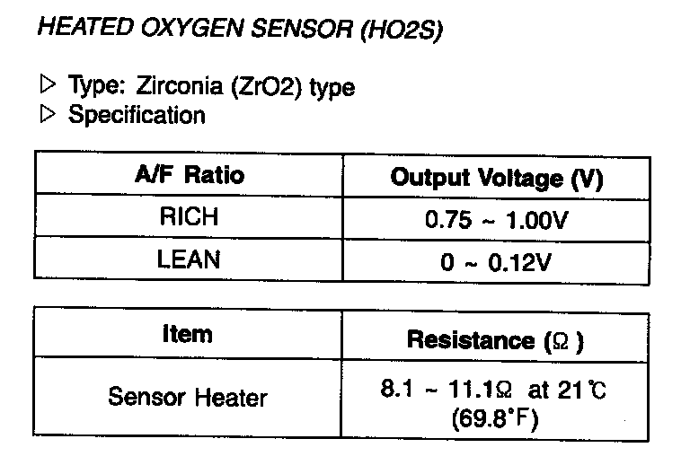 Heated Oxygen Sensor (HO2S) - Specification: