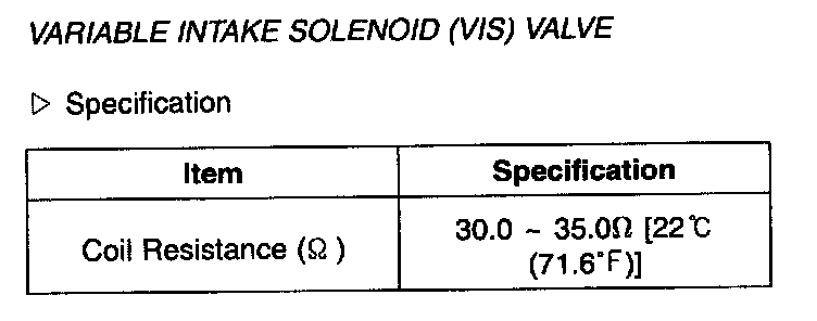 Variable Intake Solenoid (VIS) Valve - Specification: