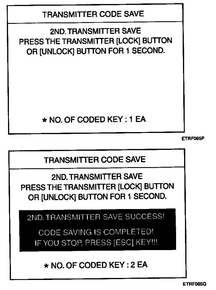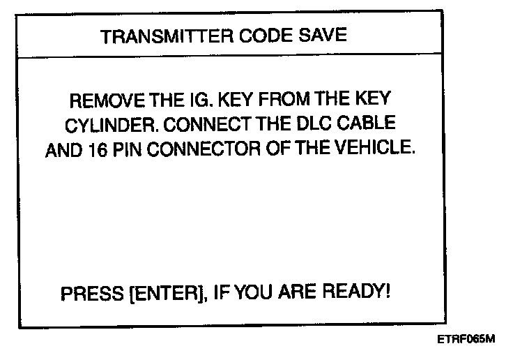 4. After removing the ignition key from key cylinder, push "ENTER" key to proceed to the next mode for code saving. Follow steps 1 to 4 and then code saving is completed.