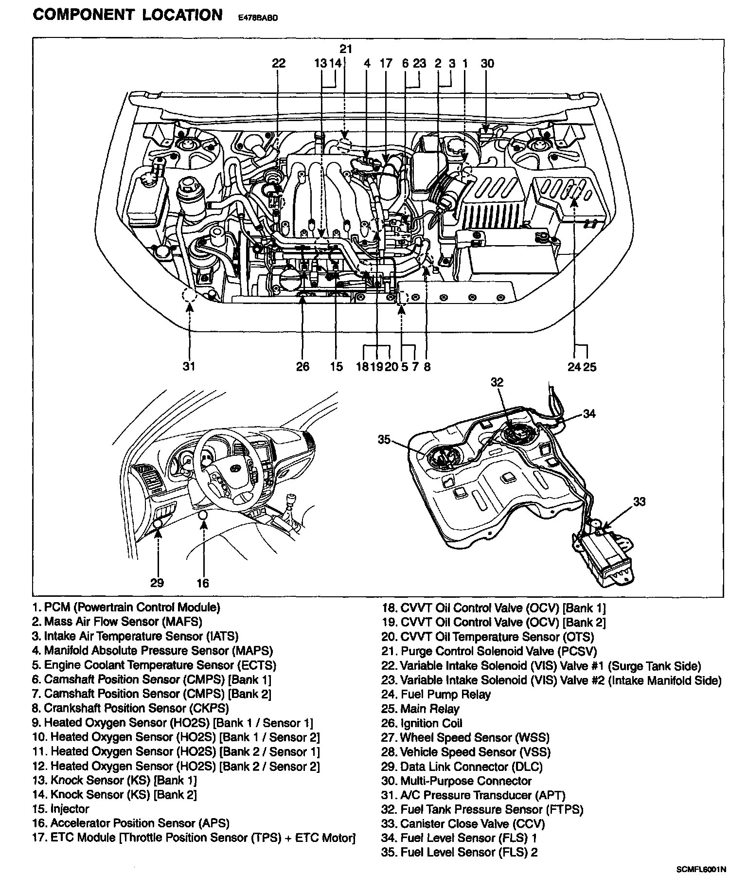 Gasoline Engine Control System - Component Location: