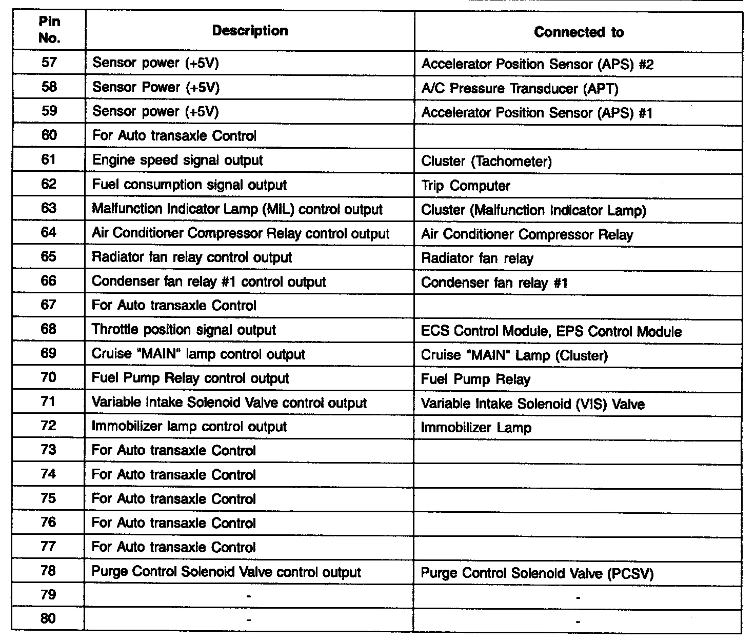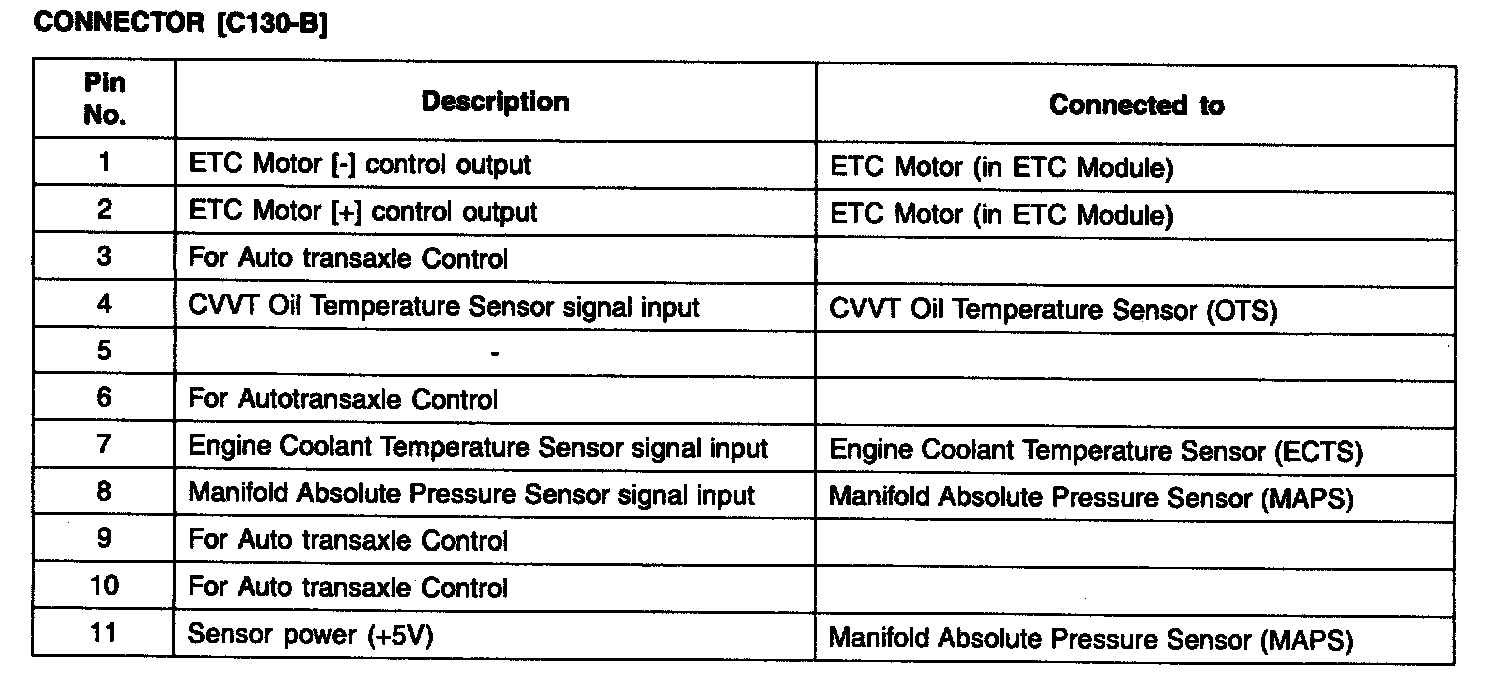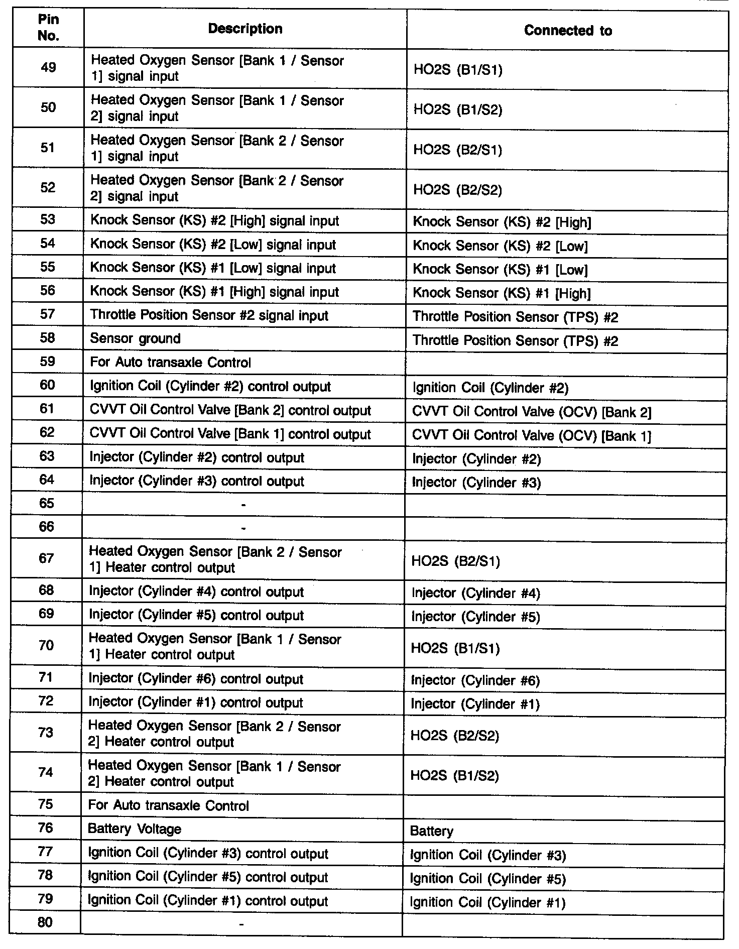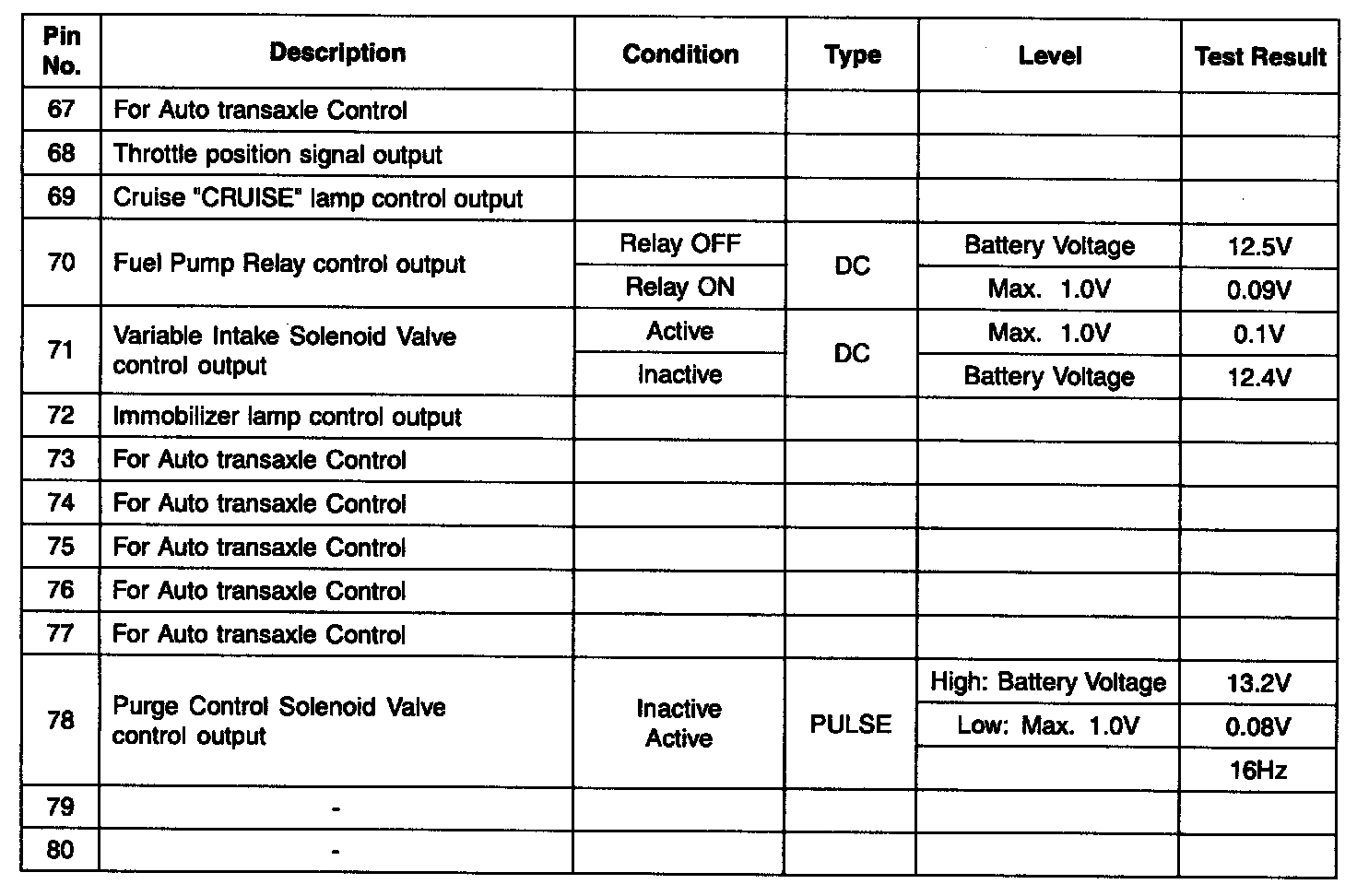 Home >> Hyundai >> 2008 >> Santa Fe FWD V6-3.3L >> Repair and Diagnosis >> Powertrain Management >> Computers and Control Systems >> Engine Control Module >> Testing and Inspection >> Pinout Values and Diagnostic Parameters