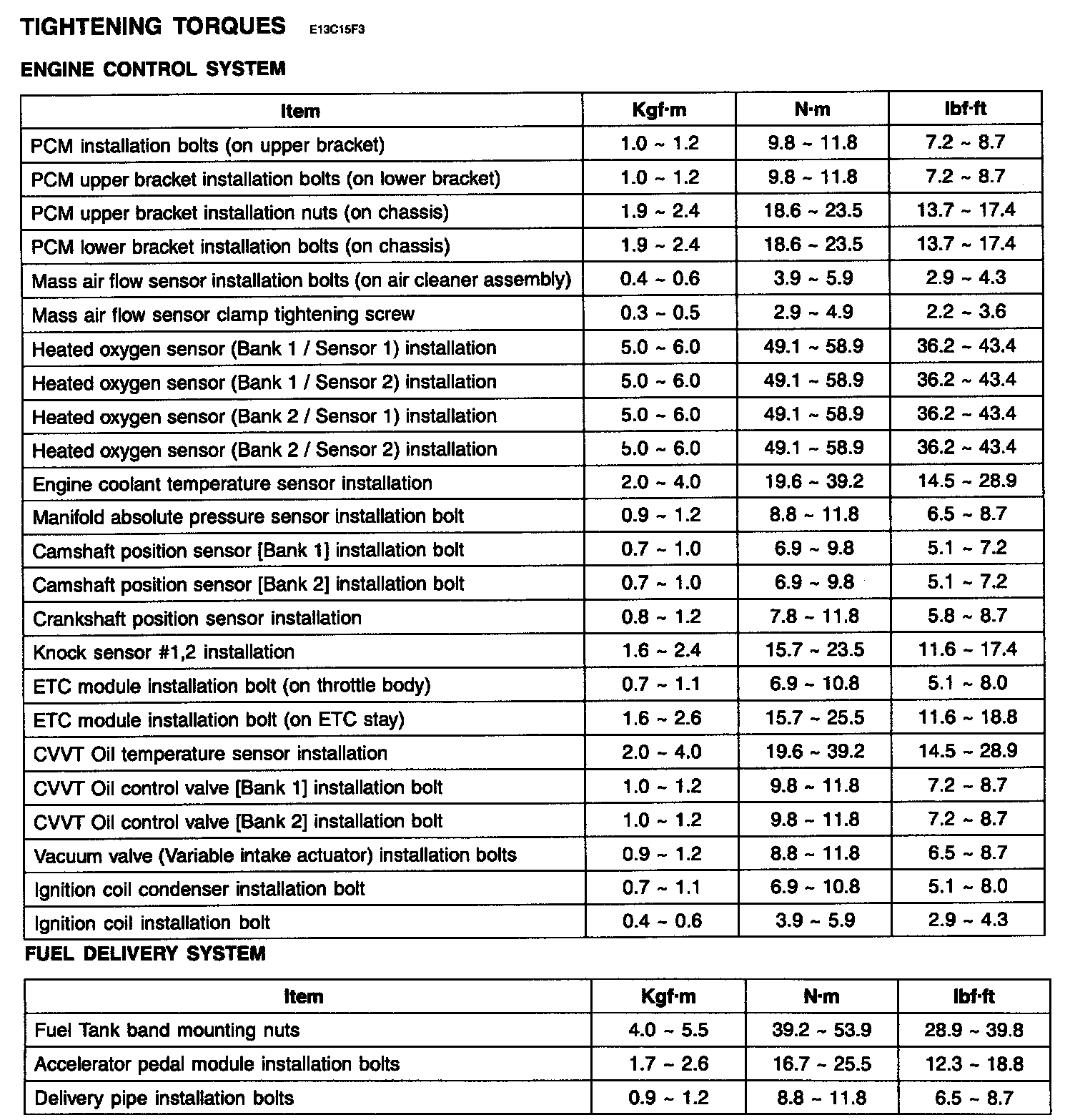 Tightening Torques:
