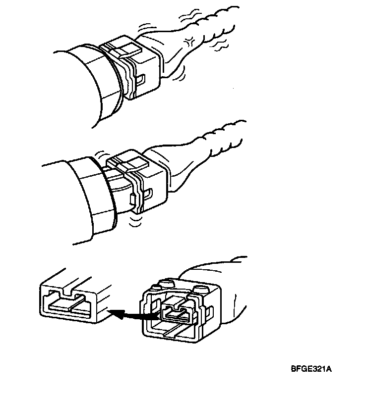 3. Slightly shake the connector and wiring harness vertically and horizontally.