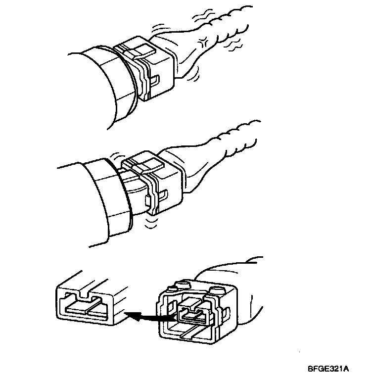 3. Slightly shake the connector and wiring harness vertically and horizontally.