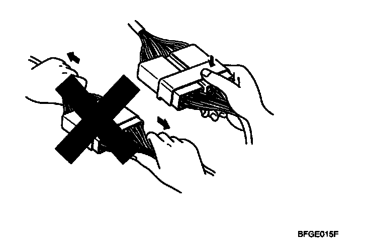 e. Check waterproof connector terminals from the connector side. Waterproof connectors cannot be accessed from harness side.