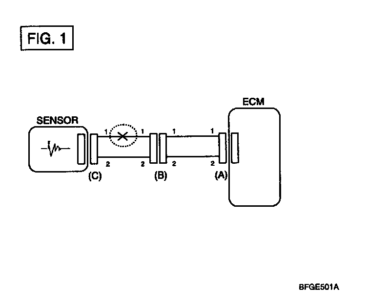 If an open circuit occurs (as seen in [FIG. 1]), it can be found by performing Step 2 (Continuity Check Method) or Step 3 (Voltage Check Method) as shown below.