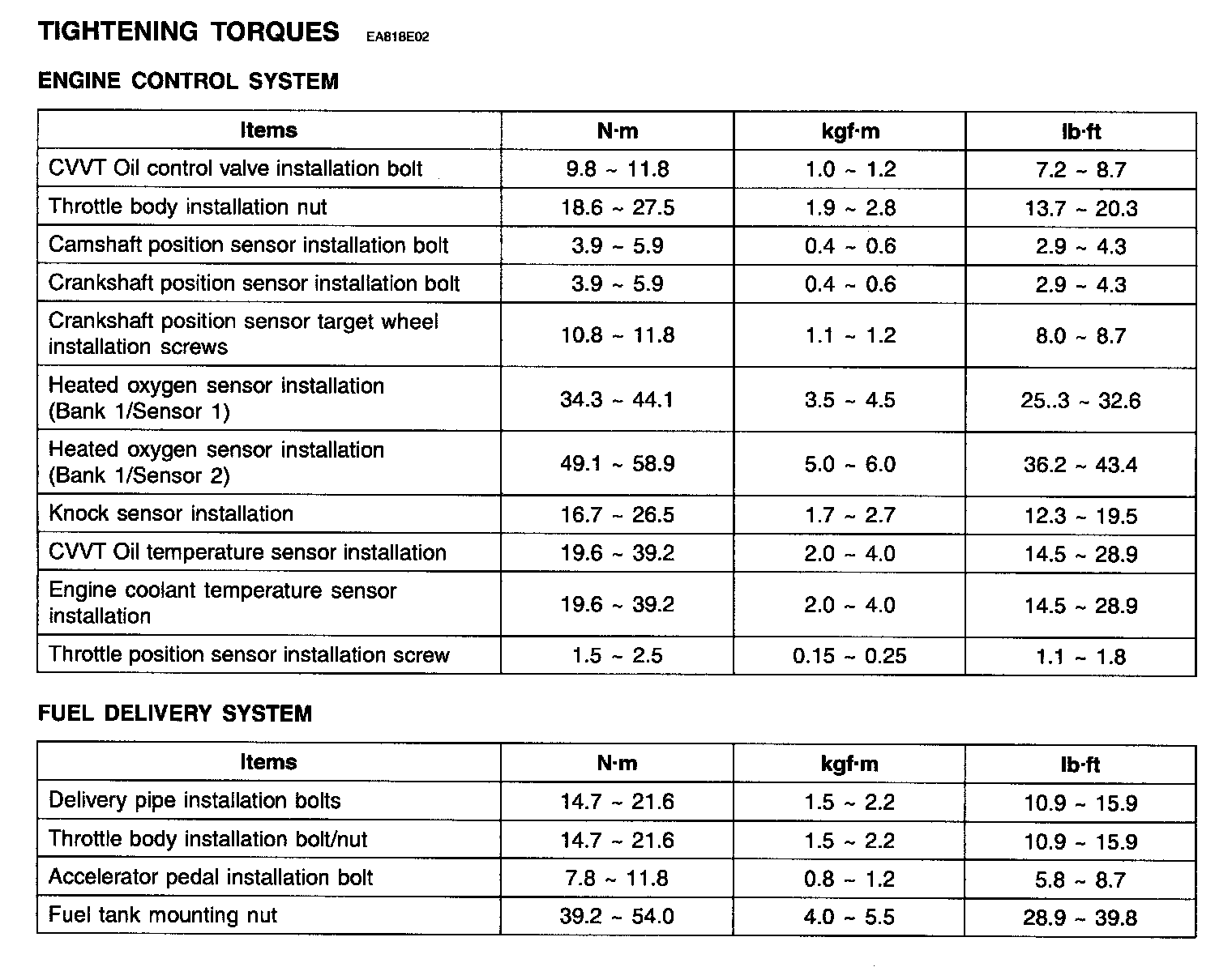 Tightening Torques: