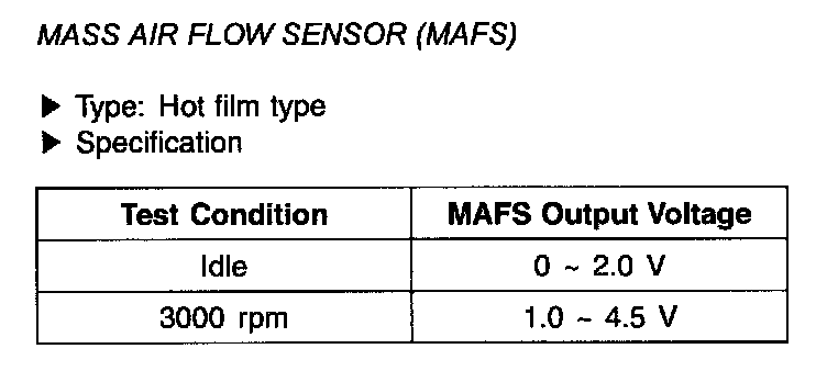 Mass Air Flow Sensor (MAFS) - Specifications: