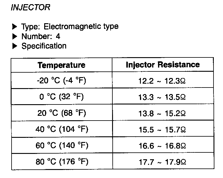 Injector - Specifications: