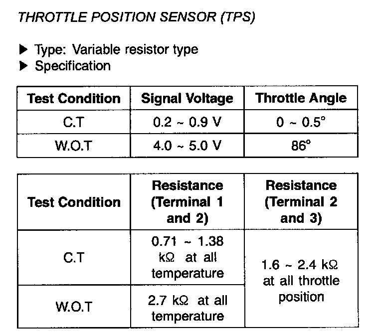 Thorttle Position Sensor (TPS) - Specifications: