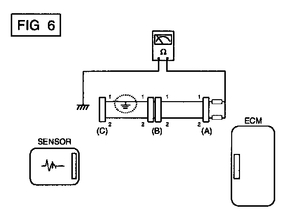 a. Disconnect connectors (A), (C) and measure for resistance between connector (A) and Chassis Ground as shown in [FIG. 6].