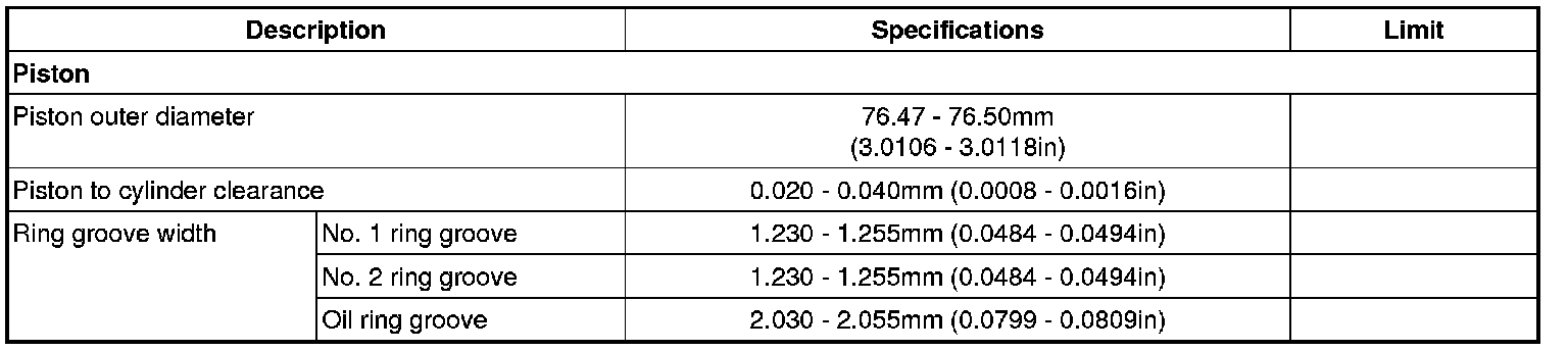 No.1 ring 0.04 - 0.085 mm (0.0016 - 0.0033 in)