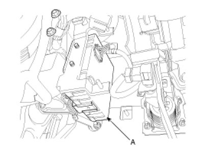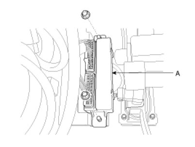 4. Remove the body control module (A) and tilt & telescope unit after loosening 2 nuts and disconnecting connector.