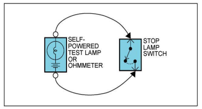 Use a self-powered test lamp or an ohmmeter to check for continuity.