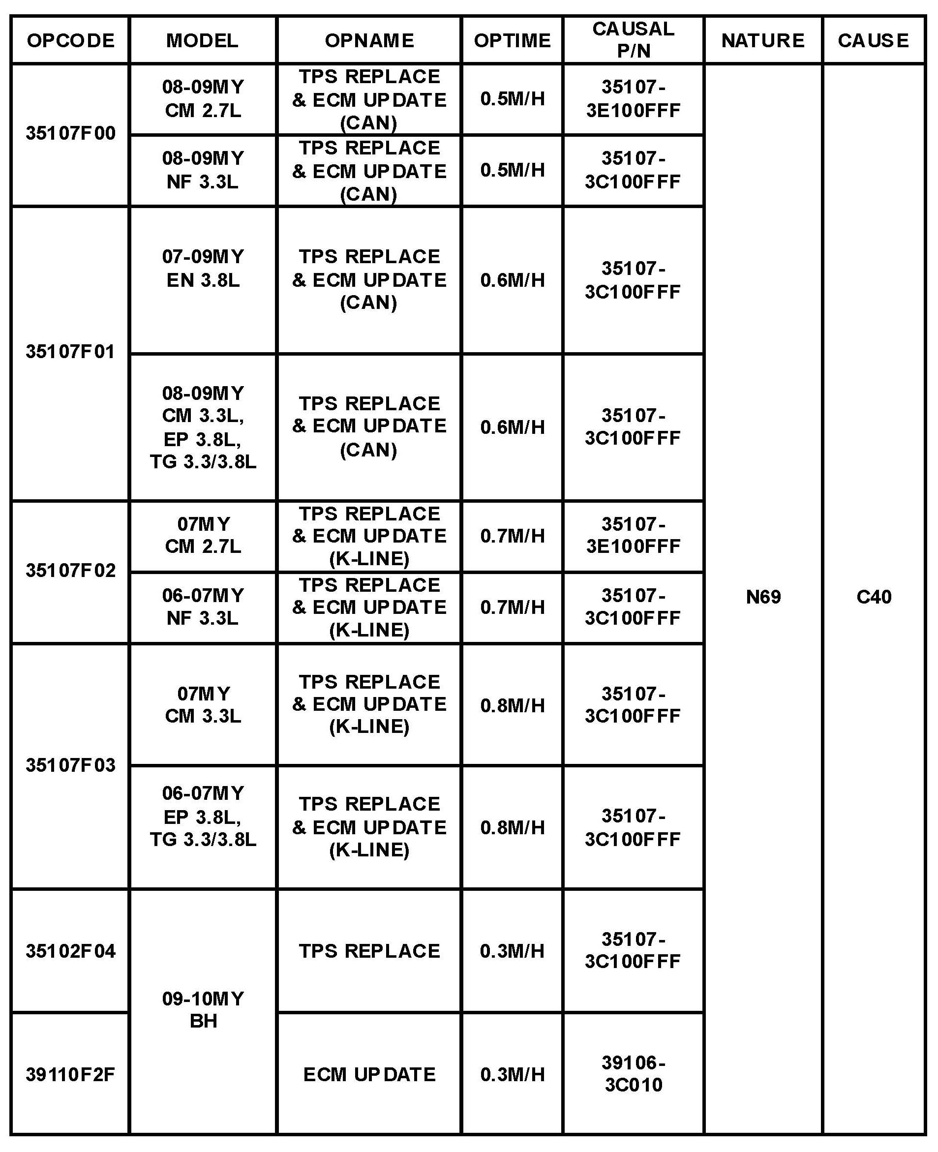 The ROM ID in the NEW column was the latest available ROM ID at the date of this TSB publication however, you may select a later event number if one is shown in the ECM update list even if it describes another issue. This would generate a more recent ROM ID than shown below but it also includes the update from this TSB.
