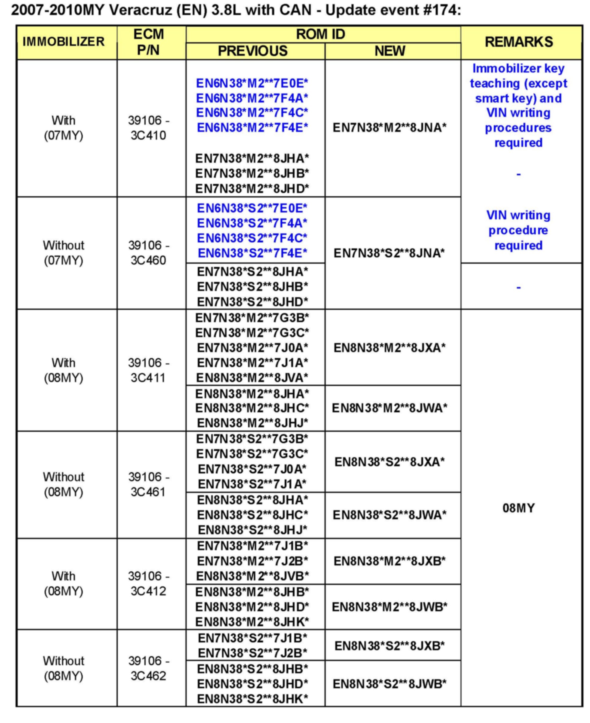 ^ 2007-2010MY VERACRUZ (EN) 3.8L vehicles.