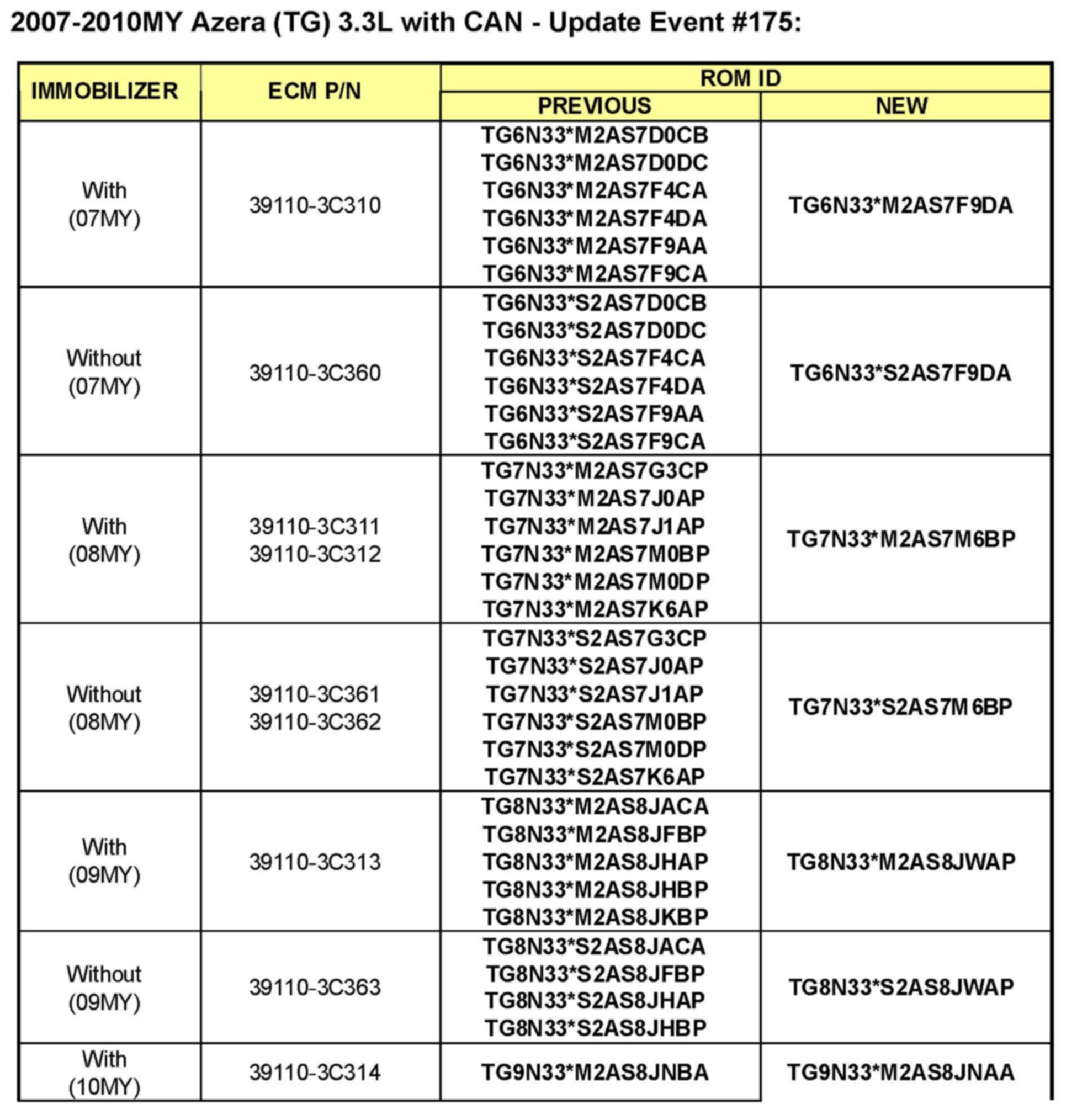 ^ 2007-2010MY AZERA (TG) 3.3L vehicles.