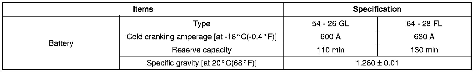 Home >> Hyundai >> 2009 >> Azera V6-3.3L >> Repair and Diagnosis >> Specifications >> Electrical Specifications >> Battery
