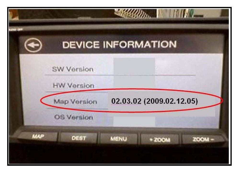4. Check the Map Version on the screen.