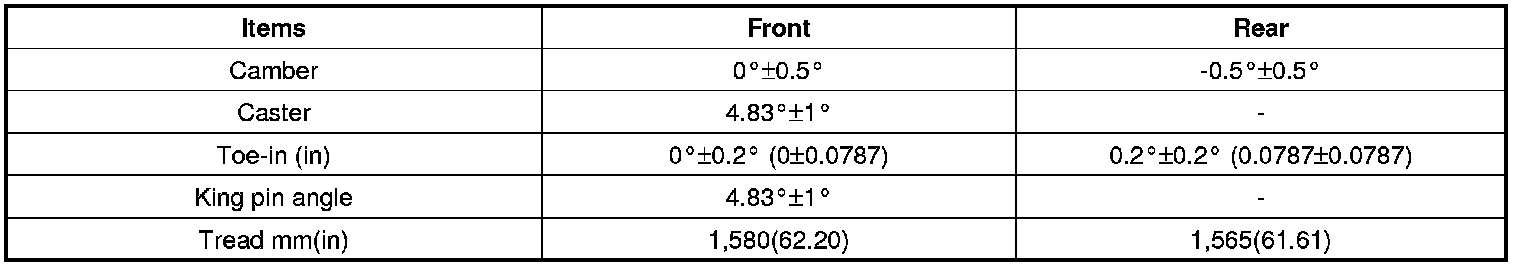 ** Toe-in (in) = individual