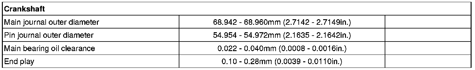 Main journal diameter 68.942 - 68.960 mm (2.7142 - 2.7149 in.)