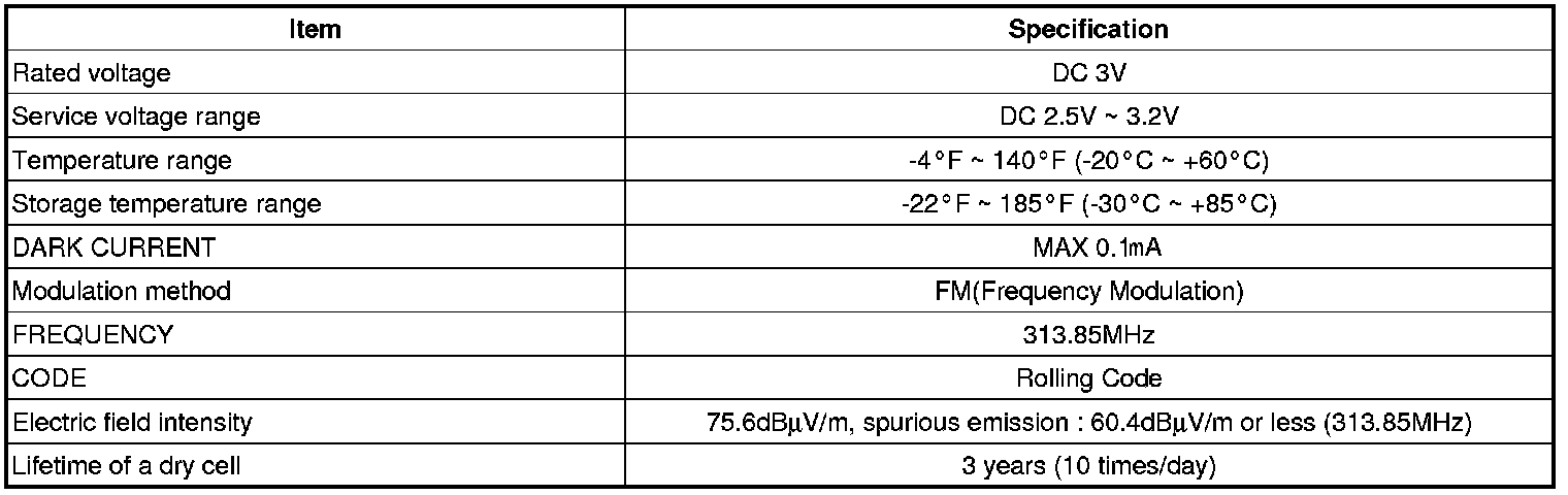 Keyless Entry: Specifications