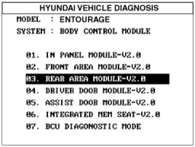 2. To diagnose the BCM function, select the menu of model and body control module.