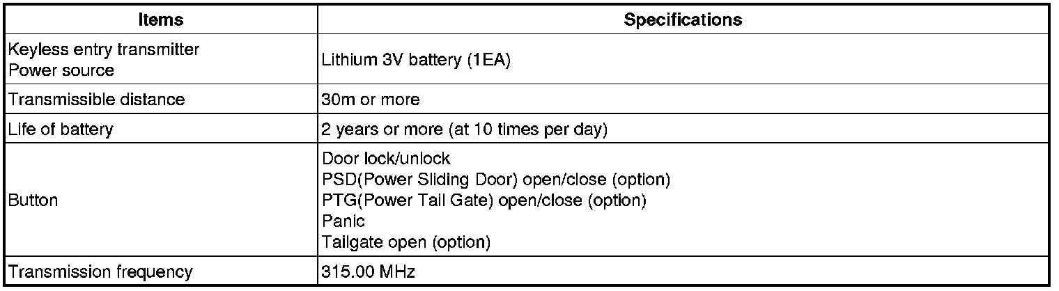 Keyless Entry: Specifications