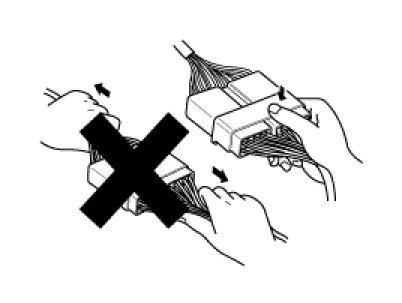 A. Never pull on the wiring harness when disconnecting connectors.