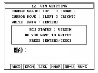 4. Write the VIN with cursor, function and number keys.
