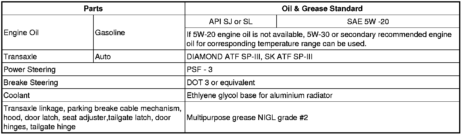 Using any other type of parts and fluid can cause serious damaged if the vehicle.RECOMMENDED LUBRICANTS