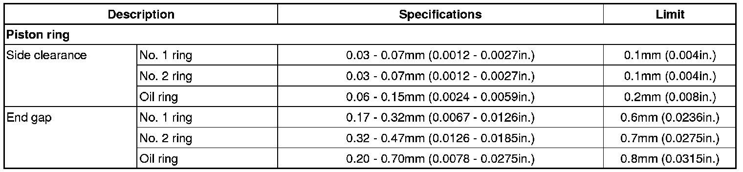 Oil ring 0.06 - 0.15 mm (0.0024 - 0.0059 in.)