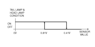 (4) If IGN1 SW is ON, and AUTO LIGHT SW is ON, and in LIGHT OFF state, and in case of AUTO LIGHT SENSOR value is the input value of the LIGHT ON, LIGHT shall be ON after 2.5 ± 0.2sec.